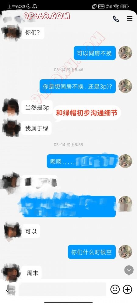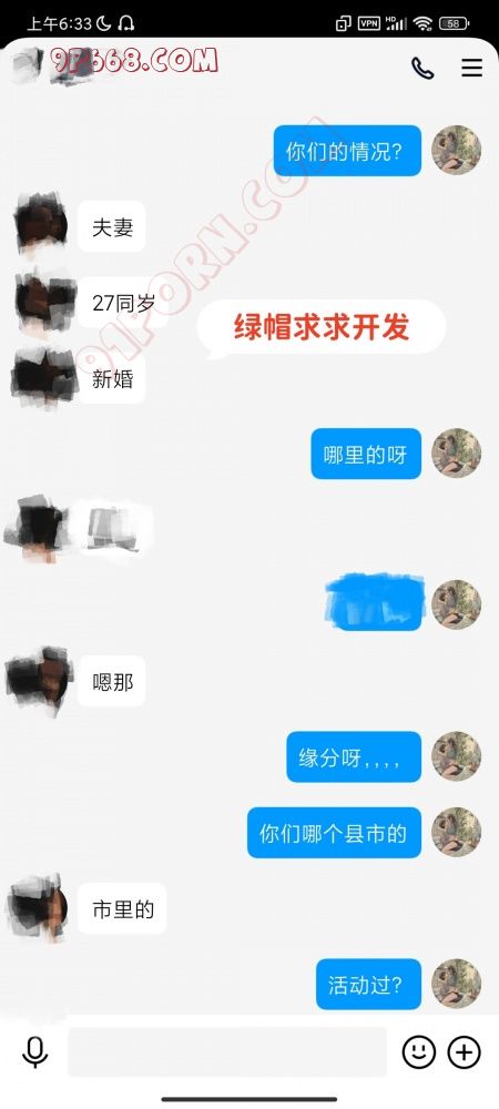 其中一对已经商量好520献妻,敬请期待!!---------------------------------------------------------------- 现在将之前3月份开发的一对绿帽相关截图给大家分享下。。。第一篇:和绿帽的聊天记录。绿帽是比较年轻的夫妻,新婚不久,但是绿帽心理严重我称为S绿帽和S妻吧。。。经过沟通居然是同个地区,缘分呀3588803